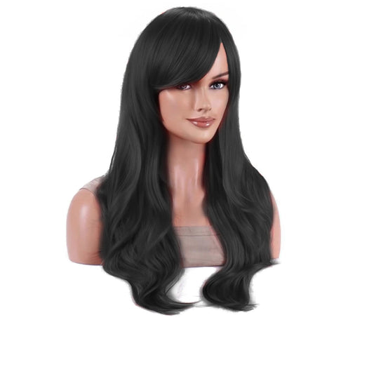 AirSky 24 Inches Long Curly Wavy Full Head Hair Wig Extension With Hair Wig Royal Black